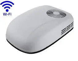 Cool-j Inverter Super Quiet 12500 Low Profile Rooftop Air Conditioner features WIFI connection for remote climate control. Designed for RVs and caravans with low-profile installation requirements.