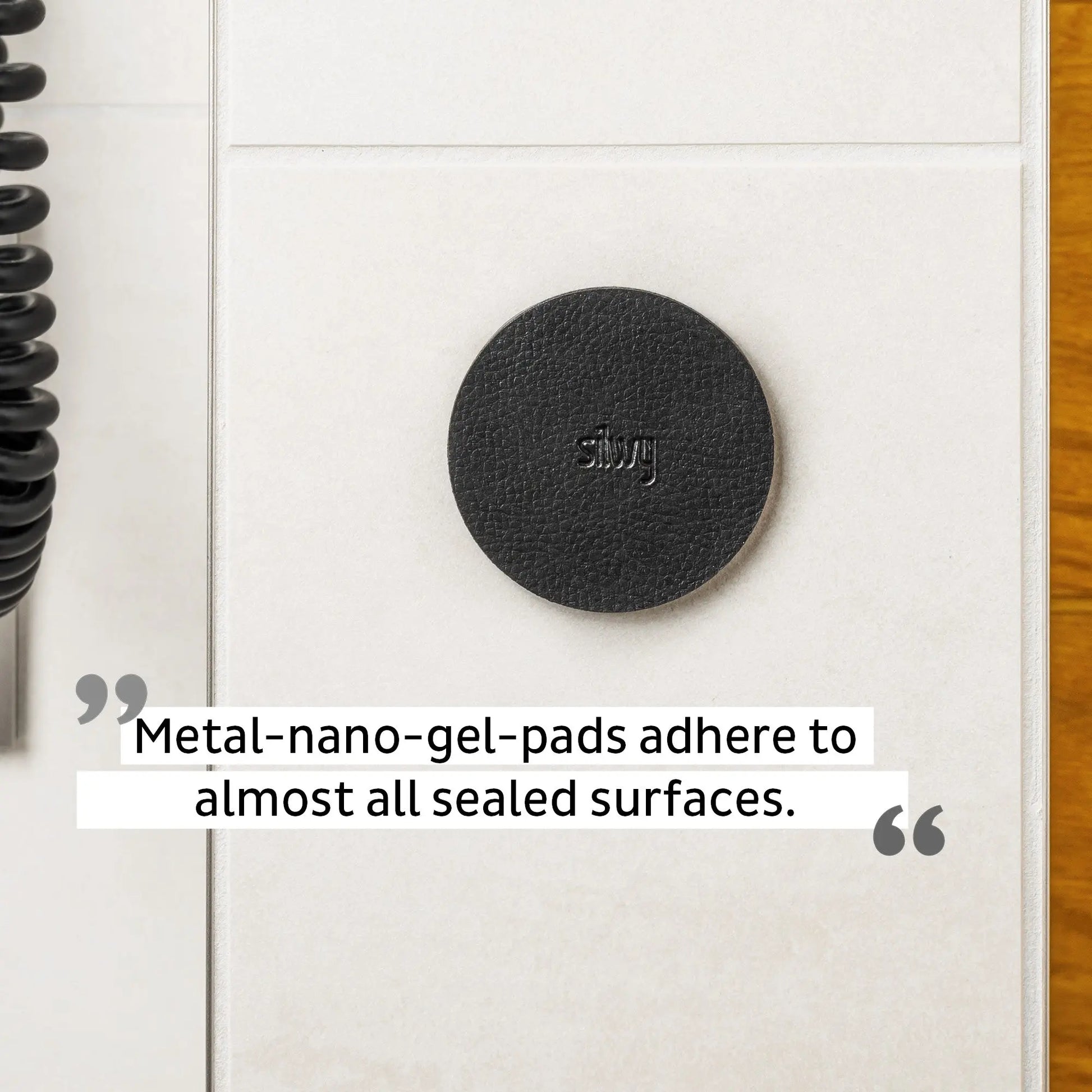 - Includes: 1 Magnetic Hook "CLEVER" + 1 Metal-Nano-Gel-Pad BLACK (6.5 cm)