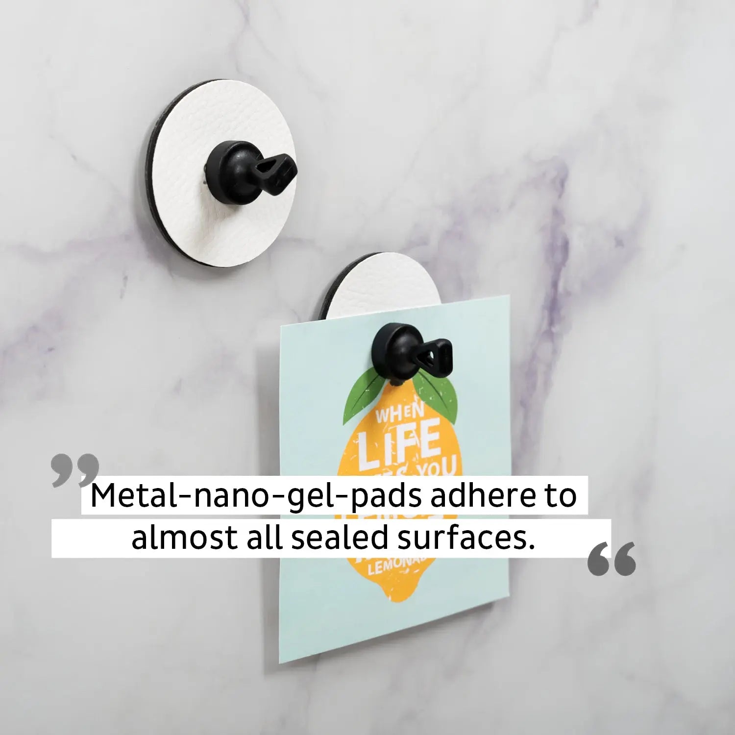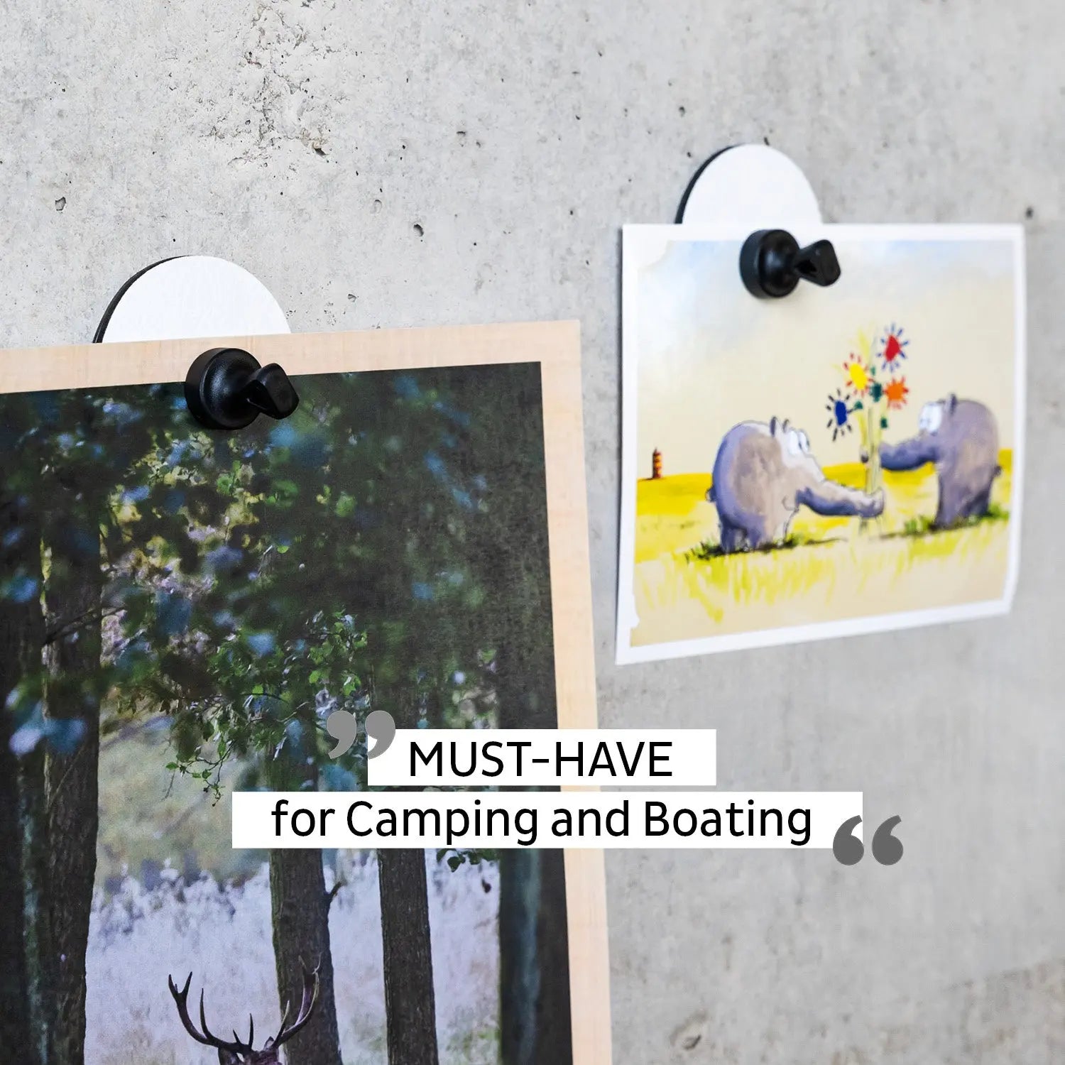 Meet the Magnetic Pins FLEX by Silwy, bundled with WHITE Metal-Nano-Gel-Pads, your stylish and damage-free solution for hanging items effortlessly. Ideal for campers, boats, homes, and offices, these magnetic pins ensure your objects stay securely in place without the need for drilling, gluing, or screwing.