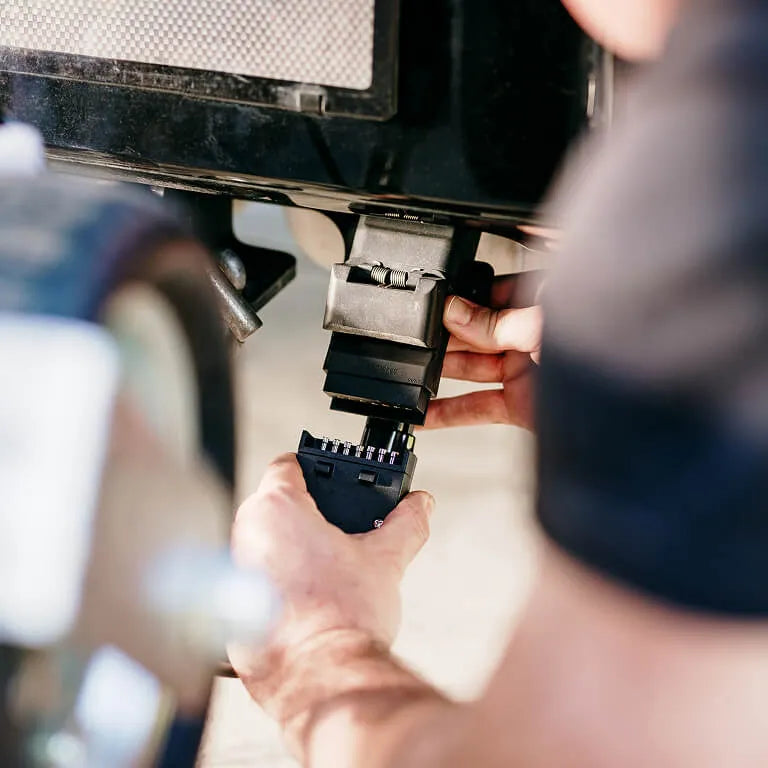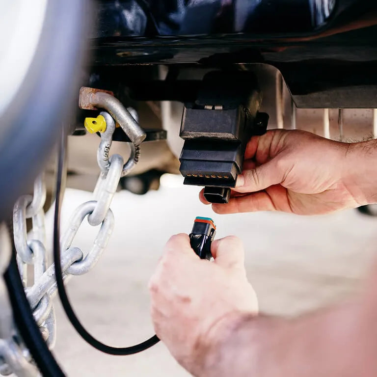 - Connects 12-pin flat vehicle socket to 12-pin flat trailer plug