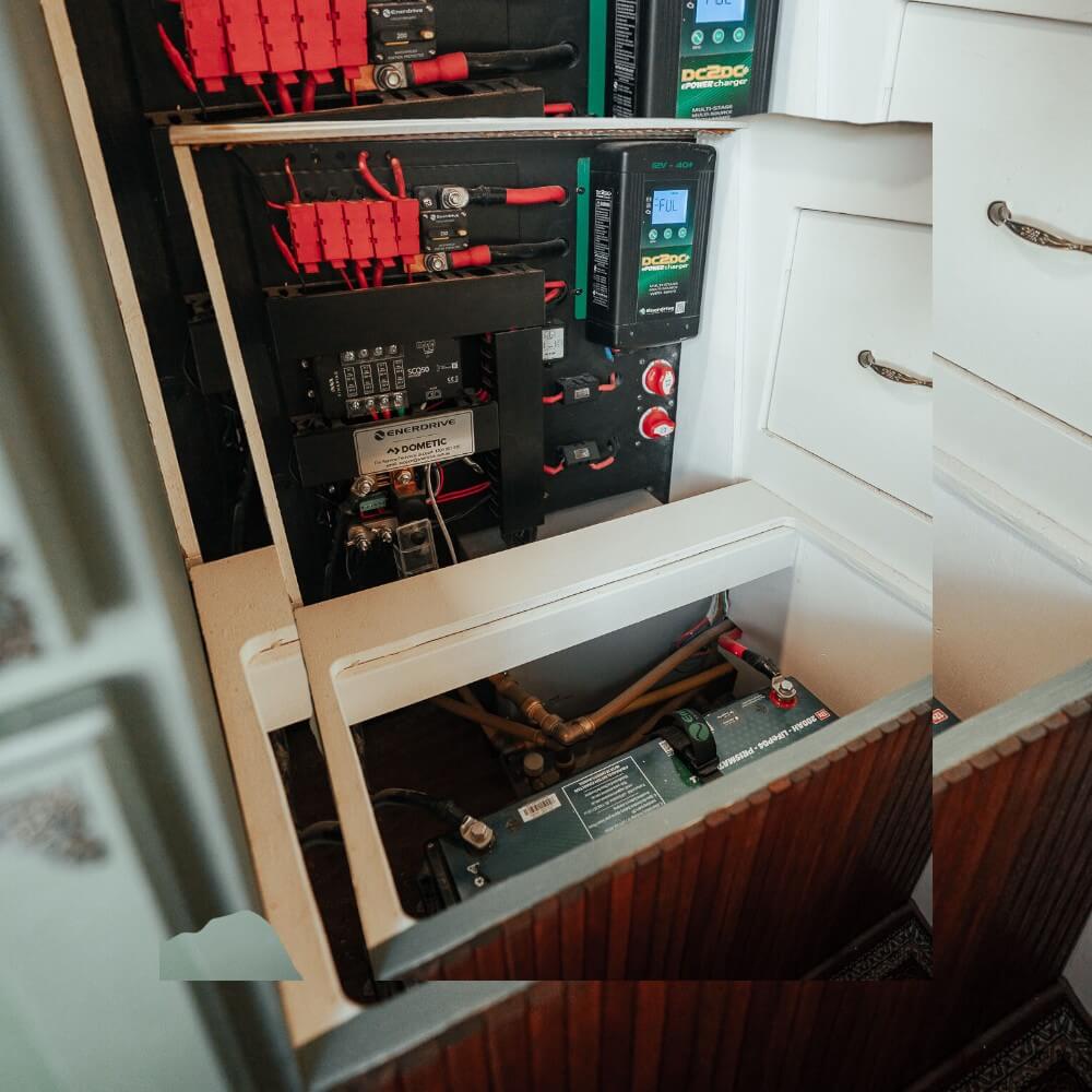 - Fuse positions: 4 × midi fuses for loads/chargers (linked to main distribution breaker)