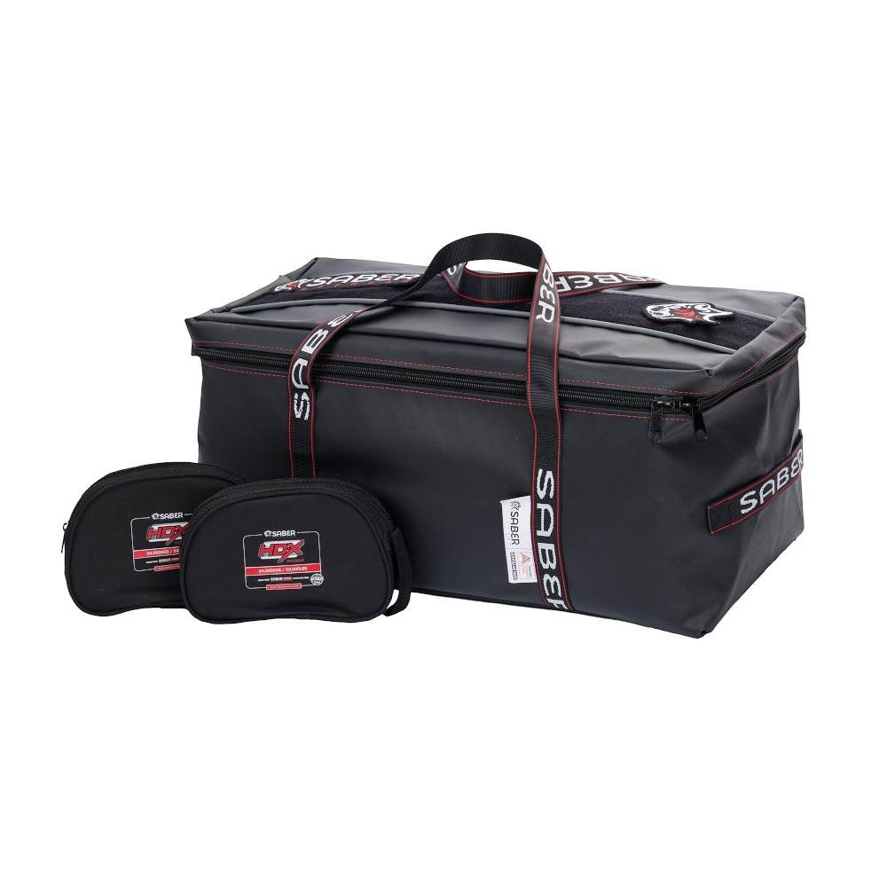 The Saber 22K Heavy Duty Kinetic Recovery Kit is a kinetic recovery kit for vehicles with GVM/GCM between 7,500 kg and 11,000 kg, including a 9 m 20,000 kg kinetic rope, two 24,000 kg HDX Technora‑bound soft shackles, and a recovery gear bag.