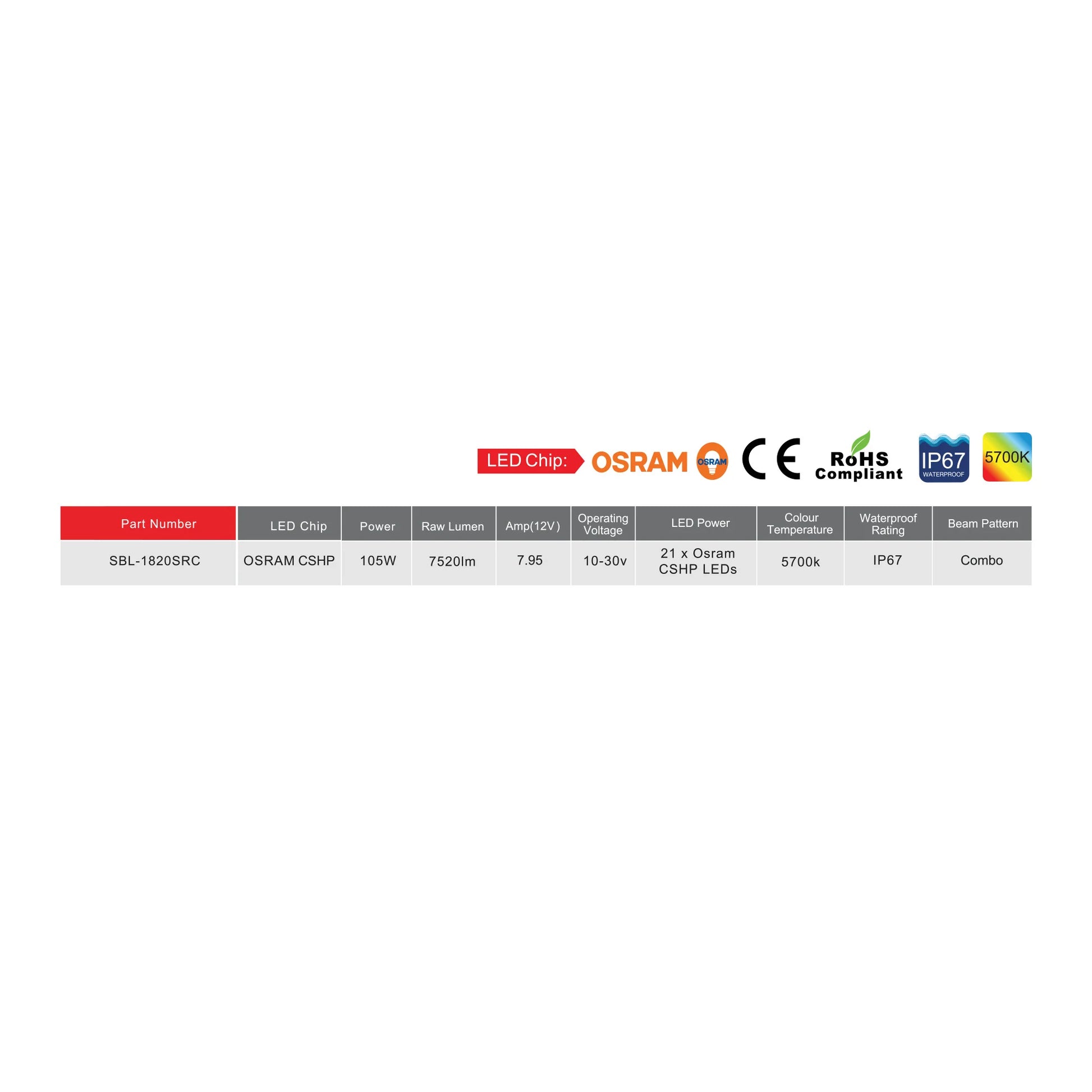 This 20″ Single Row Light Bar offers optimum light performance without excess current draw. Featuring high intensity Osram CSHP LEDs and a lightweight aluminium extruded housing, it's essential for your next adventure. With IP67/IP69K certification, it is protected against dust and water ingress.