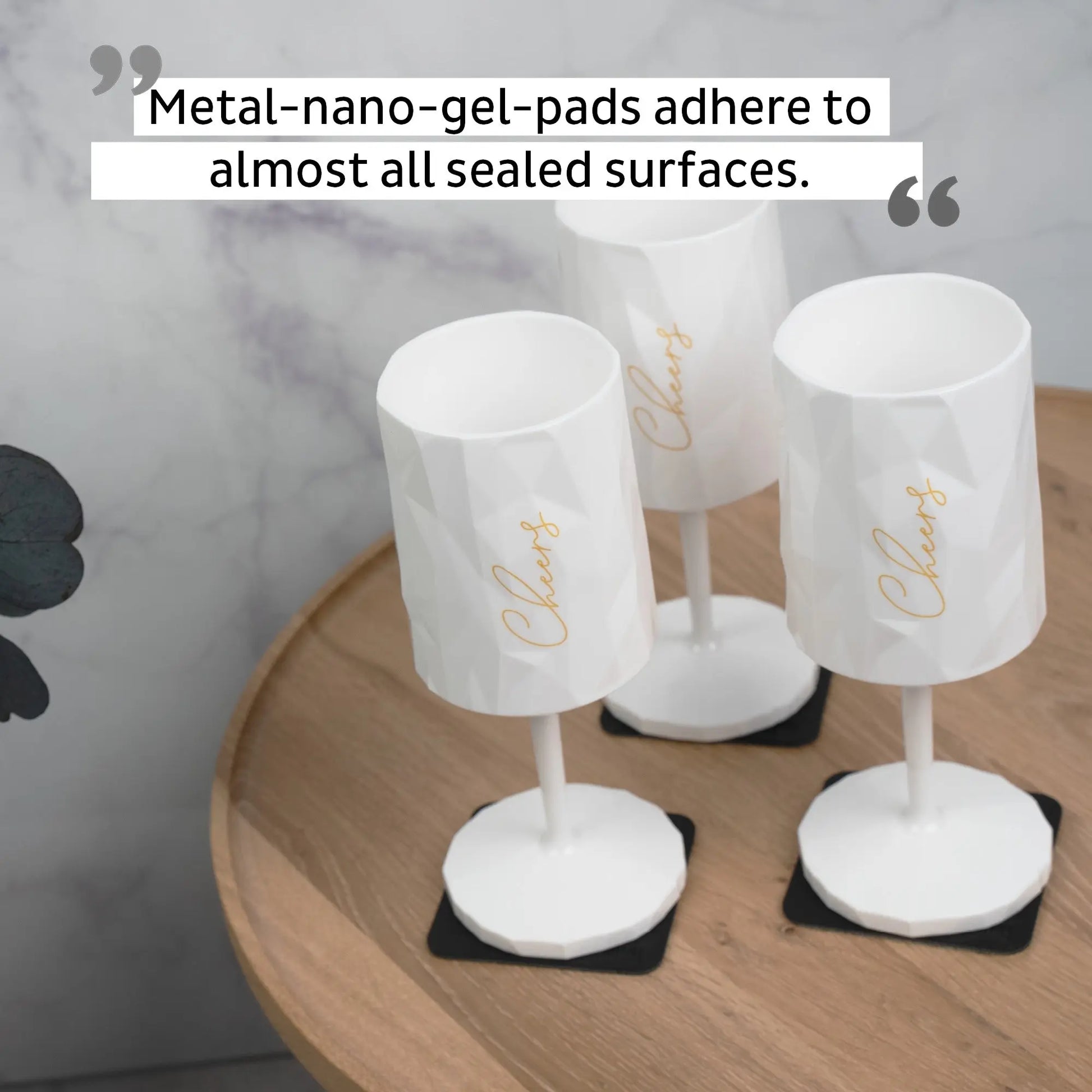 - Includes: 1 magnetic wine glass + 1 metal nano gel pad