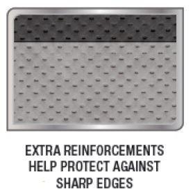 - Extra re enforcements on top and bottom of all 4 corners helps against sharp edges and reduces wear