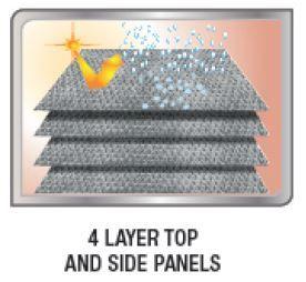 - Four layer Dupont Tyvek RV®top panel beads water on contact